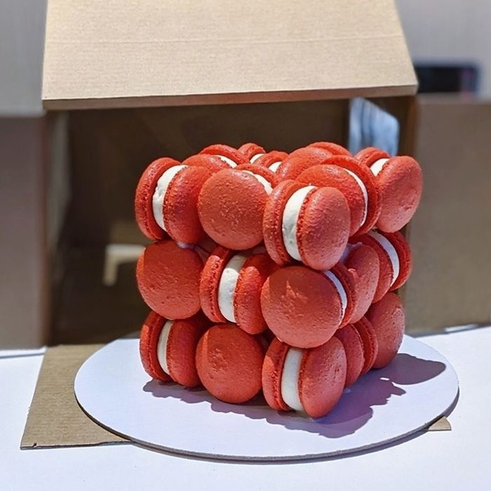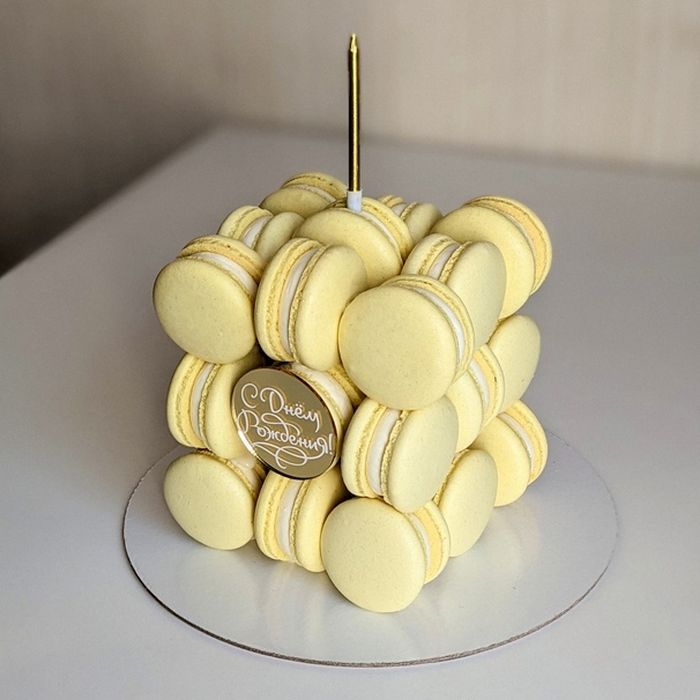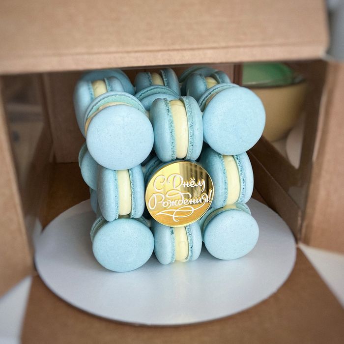 27 макарон в форме торта-куба с одним из представленных вкусов